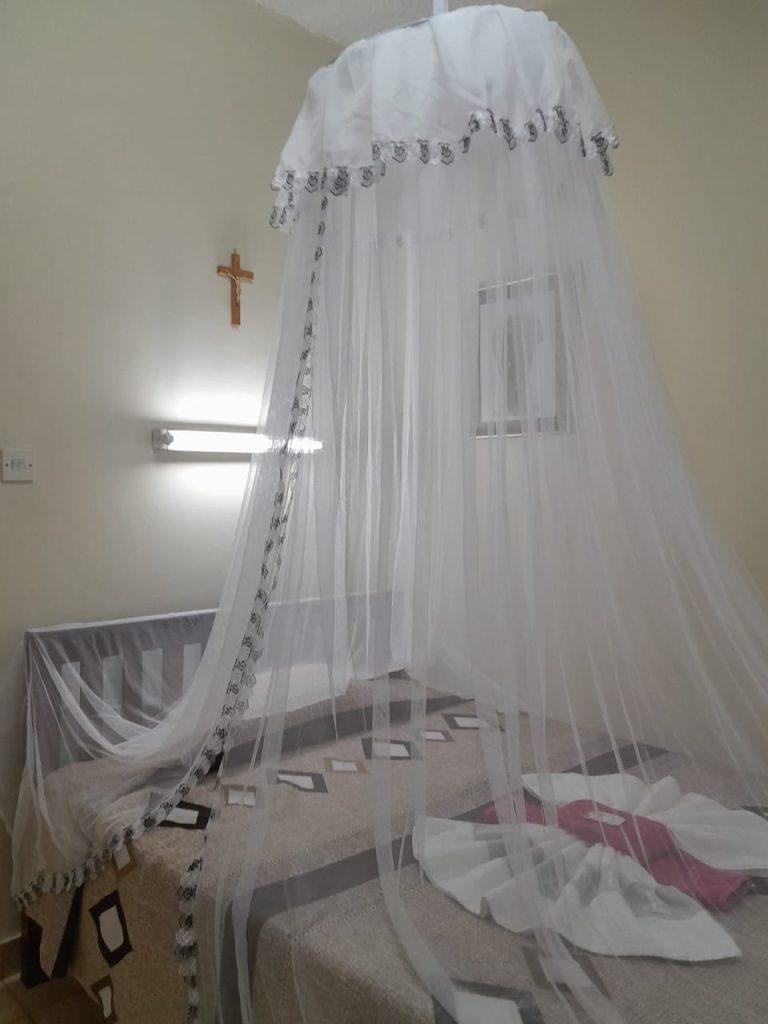 Our spacious room is ideal for private studies, it has middle size bed and treated mosquito net.